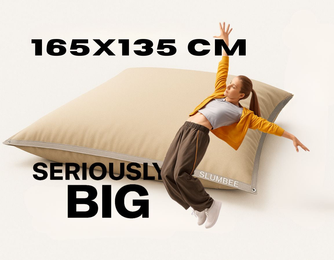 Slumbee® má rozměr 165 × 135 cm – poskytuje opravdu velkou plochu pro relax, hraní, čtení i sledování filmů. Pohodlně se na něj vejdete vy, partner/ka i děti.